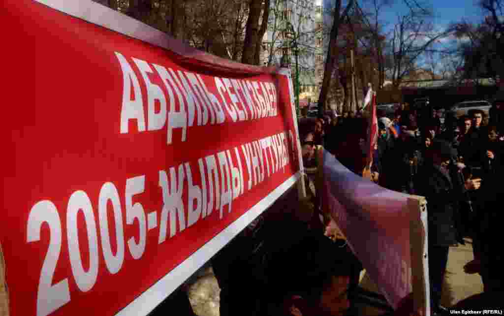 Митингге чыккан жарандык активисттер мамлекеттик маалымат каржаттары аркылуу оппозицияны бир беткей каралоону, саясий оппоненттерди куугунтуктоону жана сөз эркиндигин кысууну токтотууну талап кылууда.