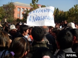 Бирок ректордун убадасына ишеним артпаган студенттер алардын өкүлдөрүнө да микрофон берүүнү талап кылышып, окуу жай жетекчилигинен бир канча көйгөйлөрдү чечип берүүнү сунушташты.