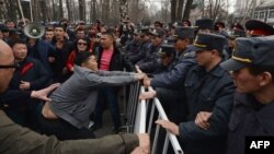 25-мартта Бишкекте Садыр Жапаровду коргоо митинги өттү. УКМК алдында топтолгон Жапаровдун тарапташтары милиция менен тирешип, бир нечеси камалды.