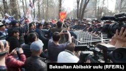 25-мартта Бишкекте Садыр Жапаровду коргоо митинги өттү. УКМК алдында топтолгон Жапаровдун тарапташтары милиция менен тирешип, бир нечеси камалды.