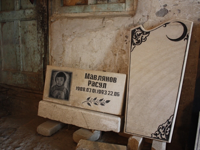 “Мен ар бир ташта камтылган окуяны, тарыхты билем”, - дейт ал чылымын жандыра. Жанында кайра оңдоого жиберилген беш жашар баланын мүрзө ташы турат. Бул бала сууга чөгүп өлгөн экен.